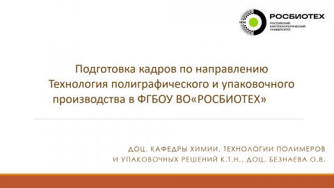 Ольга Безнаева, Росбиотех - "Подготовка кадров по направлению Технология полиграфического и упаковочного производства в ФГБОУ ВО«РОСБИОТЕХ»"